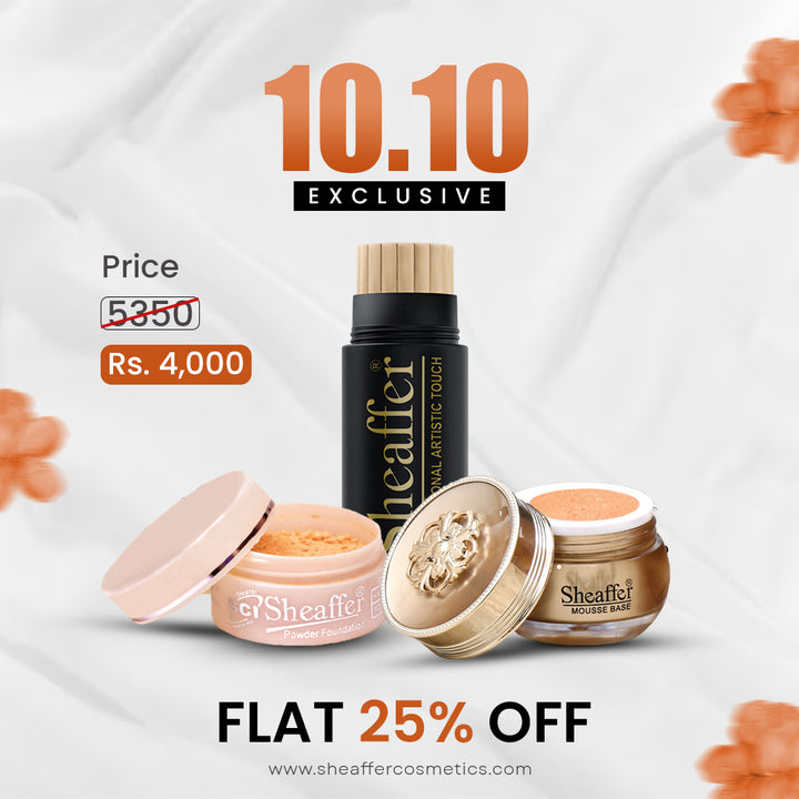 Get ready to glow this 10.10 with the Sheaffer Limited Edition Makeup Bundle — your complete everyday-to-glam face kit, designed for Pakistani skin tones and made to deliver a smooth, flawless finish in minutes. Whether it’s office, dinner, or a festive event, this exclusive combo is all you need to perfect your look — without breaking the bank.